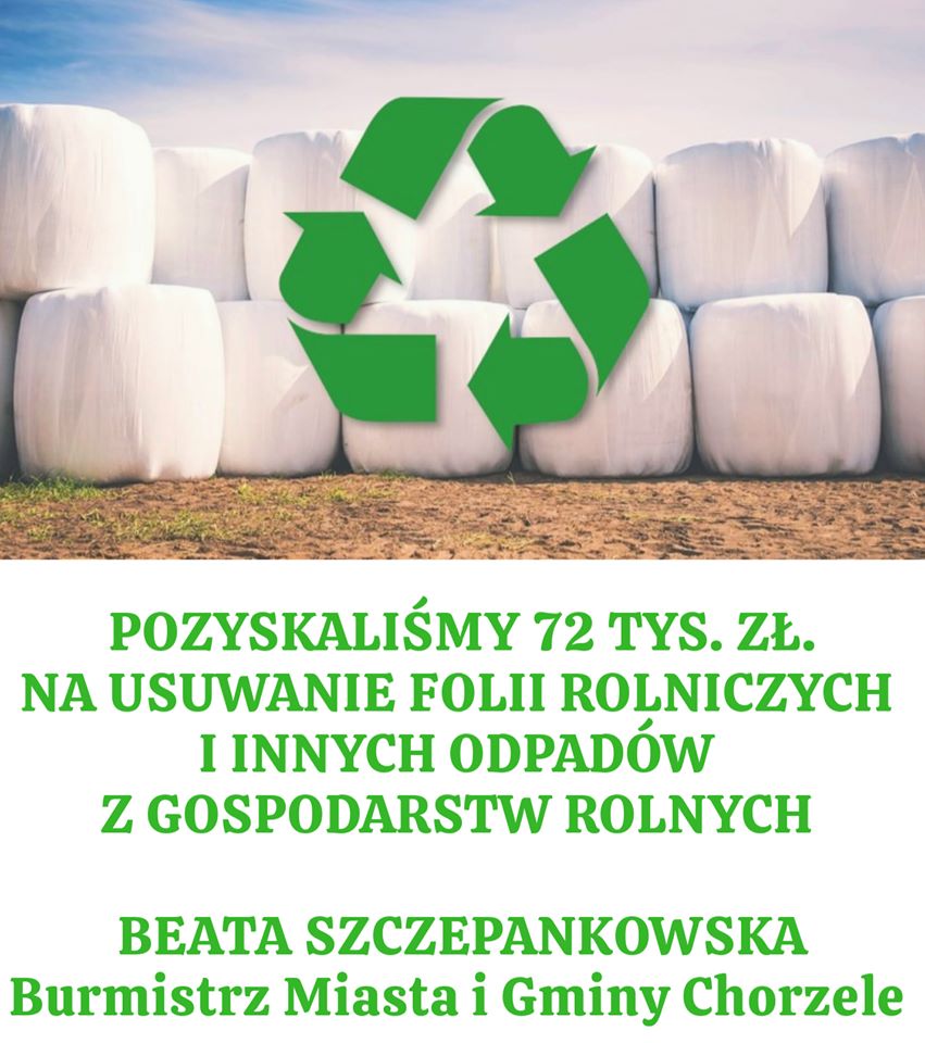Wniosek burmistrz Beaty Szczepankowskiej został pozytywnie zweryfikowany i Gmina otrzymała prawie 72 tys. zł. dofinansowania na program usuwania z gospodarstw rolnych odpadów z folii rolniczych, siatki i sznurka do owiajania balotów, opakowań po nawozach i tylu Big Bag. Umowę z NFOŚ burmistrz Beata Szczepankowska podpisała w piątek.