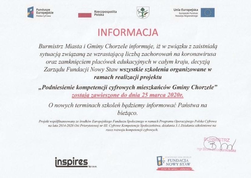 W związku z koniecznością ograniczenia rozpowszechniania się choroby zakaźnej COVID-19, wywołanej przez koronawirusa w Polsce.