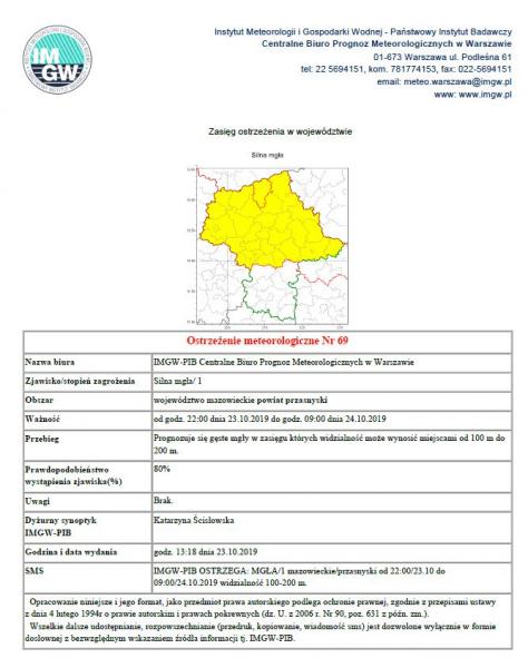 Obrazek Ostrzeżenie meteorologiczne nr 69 IMGW-PIB Centralne Biuro Prognoz Meteorologicznych w Warszawie. więcej