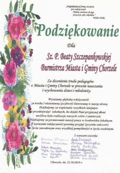 21 października odbyła się uroczystość wręczenia Nagród Burmistrza z okazji Narodowego Dnia Edukacji dyrektorom oraz nauczycielom szkół z terenu Gminy Chorzele.