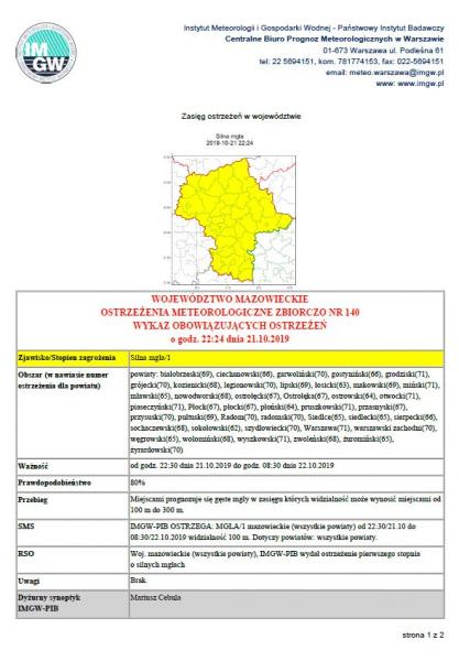 Obrazek Ostrzeżenie meteorologiczne zbiorczo nr 140 więcej