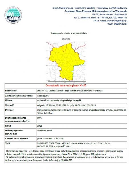 Obrazek Ostrzeżenie meteorologiczne nr 67 więcej