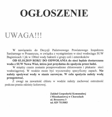 Urząd Miasta i Gminy w Chorzelach informuje, że w dniach od 02.10.2019r. do dnia 07.10.2019r. w godzinach od 9.00- do 15.00 w pokoju nr 23 wyborca może sprawdzić, czy został uwzględniony w spisie wyborców uprawnionych do udziału w wyborach do Sejmu Rzeczypospolitej Polskiej i do Senatu Rzeczypospolitej Polskiej zarządzonych na dzień 13 października 2019r.