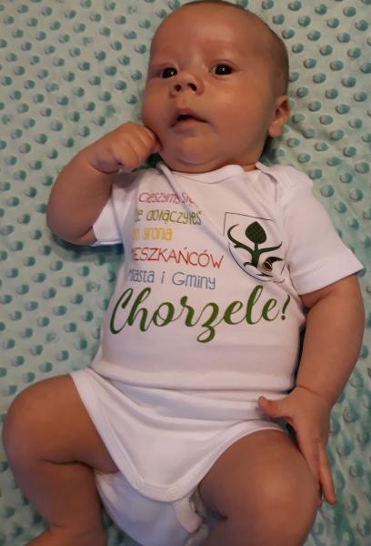Prezentujemy zdjęcie naszego małego, pięknego Mieszkańca w chorzelskich bodziakach wręczanych przez burmistrz Beatę Szczepankowską! Czekamy na kolejne.