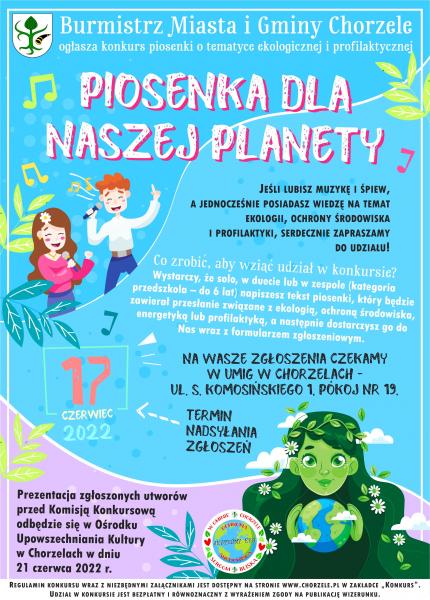 Zgłoszenia konkursowe będą przyjmowane w siedzibie Urzędu Miasta i Gminy w Chorzelach, ul. Stanisława Komosińskiego 1, 06-330 Chorzele, (pokój nr 19), w terminie do dnia 17 czerwca 2022 r., natomiast prezentacja zgłoszonych utworów przed Komisją Konkursową odbędzie się w Ośrodku Upowszechniania Kultury w Chorzelach w dniu 21 czerwca 2022 r.