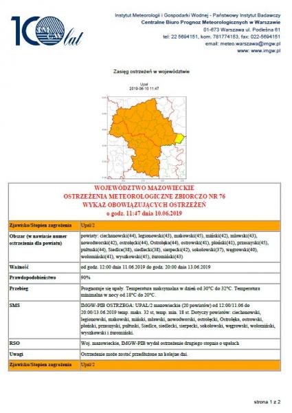 Obrazek Ostrzeżenia meteorologiczne zbiorczo nr 76 IMGW-PIB Centralne Biuro Prognoz Meteorologicznych w Warszawie. więcej