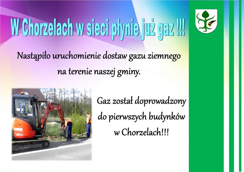 Nastąpiło uruchomienie dostaw gazu ziemnego na terenie naszej gminy. Gaz został doprowadzony do pierwszych budynków w Chorzelach!
