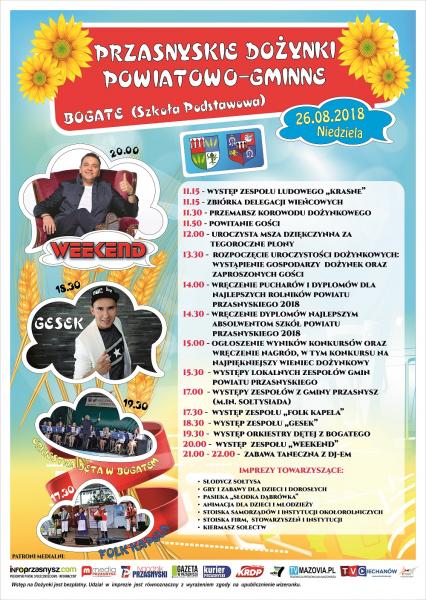 Obrazek Zapraszamy na Przasnyskie Dożynki Powiatowo -  Gminne - 26 sierpnia 2018r. (niedziela) Bogate (Szkoła Podstawowa). Serdecznie zapraszamy! więcej