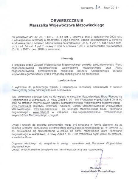 Obrazek Obwieszczenie Marszałka Województwa Mazowieckiego. więcej