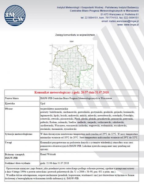 W związku z występującymi upałami Burmistrz Miasta i Gminy Chorzele zarządzeniem Nr 126/2018 z dnia 2 sierpnia 2018 r. wprowadza zmieniony czas pracy pracowników Urzędu Gminy w Chorzelach w dniu 03.08.2018r. W tym dniu Urząd będzie czynny w godzinach od 6.00 do 14.00.