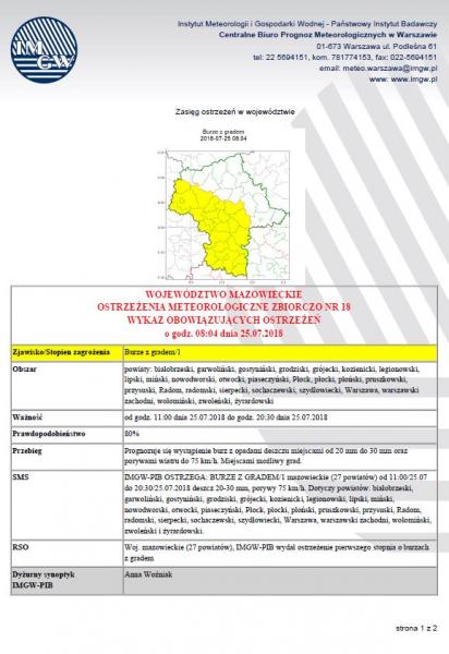 Obrazek Ostrzeżenie meteorologiczne nr 18 Instytutu Meteorologii i Gospodarki Wodnej - Państwowego Instytutu Badawczego. więcej