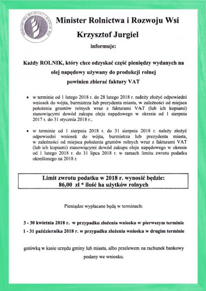 Informacje dotyczące wniosku o zwrot podatku akcyzowego zawartego w cenie oleju napędowego wykorzystywanego do produkcji rolnej.