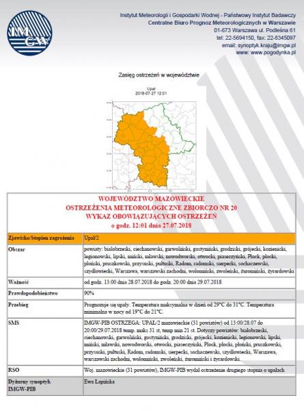 Obrazek Ostrzeżenie meteorologiczne nr 20 Instytutu Meteorologii i Gospodarki Wodnej - Państwowego Instytutu Badawczego. więcej