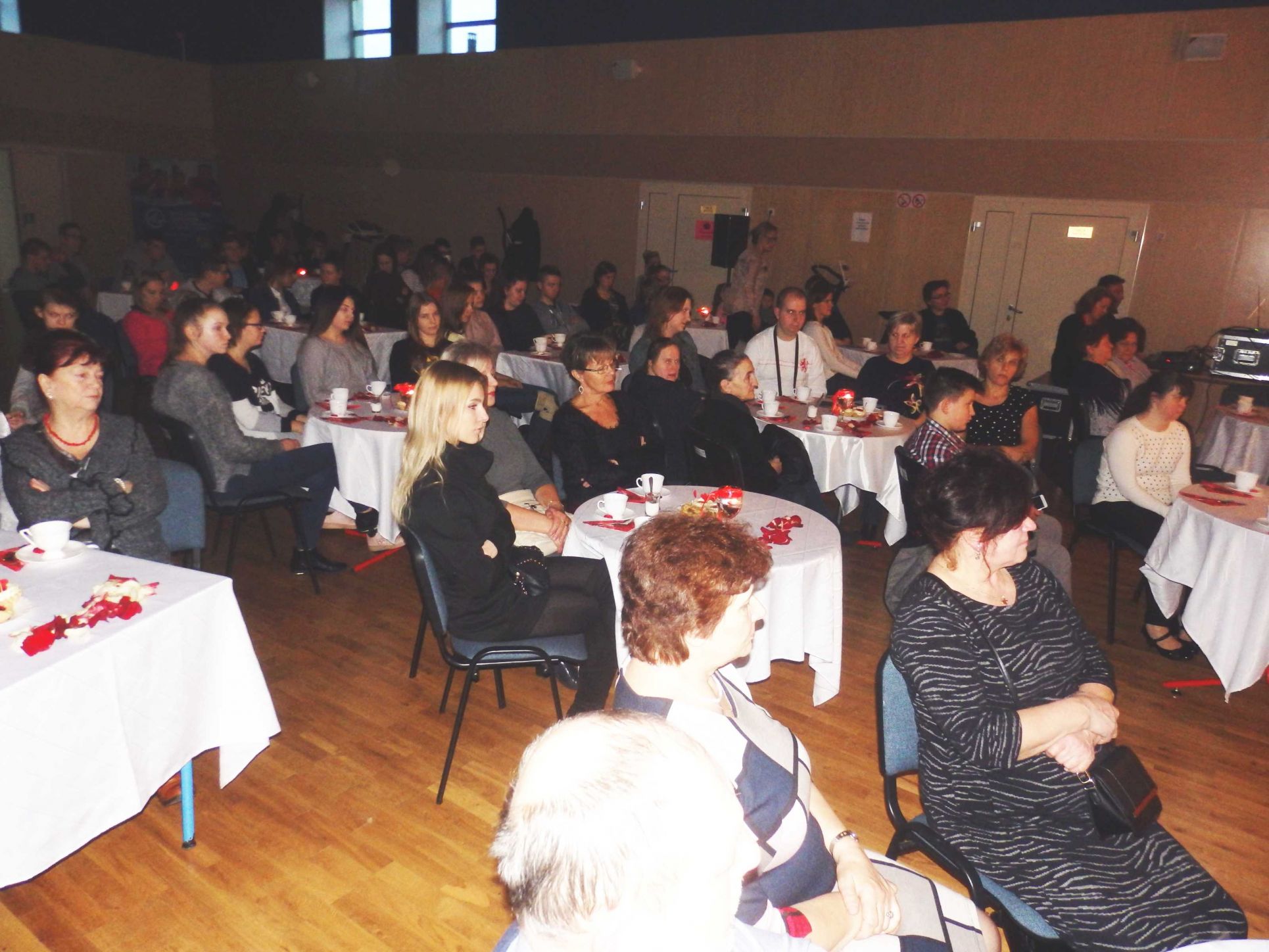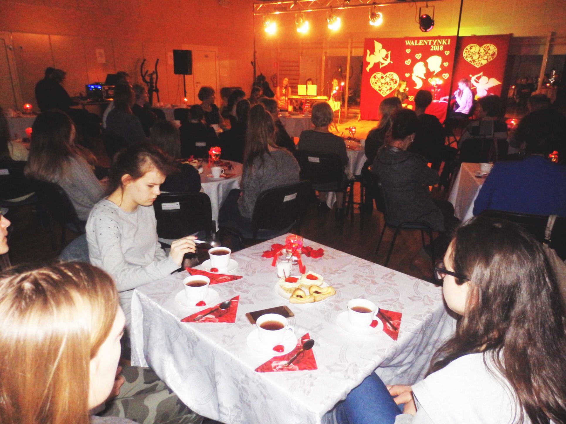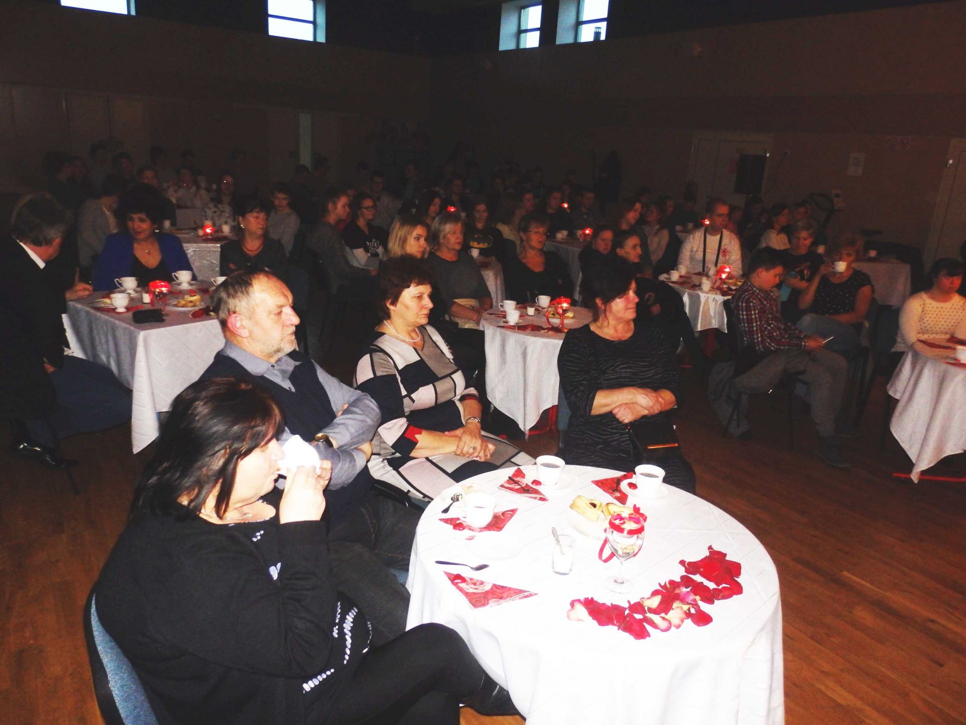 Walentynki 2018 w naszej gminie przebiegły w podniosłej i romantycznej atmosferze. We wtorek 13 lutego na auli Mazowieckiego Centrum Sportów Zimowych w Chorzelach zgromadziło się mnóstwo „zakochanych”, którzy spędzili miły wieczór przy dobrej muzyce i poezji recytowanej. Wspaniałą część artystyczną wyreżyserowała Bożena Wdowińska. Przed gośćmi wystąpiła utalentowana młodzież z naszej gminy: Monika Komorowska, Ania Kubiak, Maria Małkowska, Zuzanna Paras, Damian Budny oraz Jakub Danelski. Swoim występem wprowadzili oni uczestników spotkania w cudowny nastrój i przenieśli chociaż na chwilę w świat ciepłych uczuć związanych z miłością i romantyzmem. Nasi goście przy pięknie nakrytych stołach, w blasku świec mogli poczuć się jak w prawdziwej kawiarence i skosztować przepysznych smakołyków oraz napić się dobrej kawy. To były niezapomniane Walentynki, które z pewnością pozostaną w pamięci wszystkich gości przez długi czas.