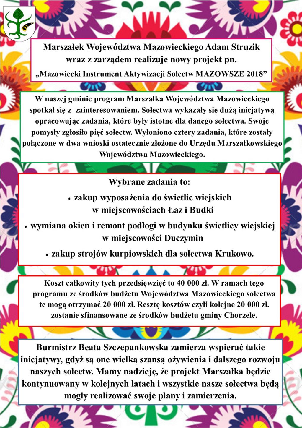 Konsultacje PGNiG dla mieszkanców Miasta i Gminy Chorzele ||| INFORMACJA O KORONAWIRUSIE ||| Zwrot podatku akcyzowego ||| Wywiad z Burmistrz Miasta i Gminy Chorzele Beatą Szczepankowską. |||