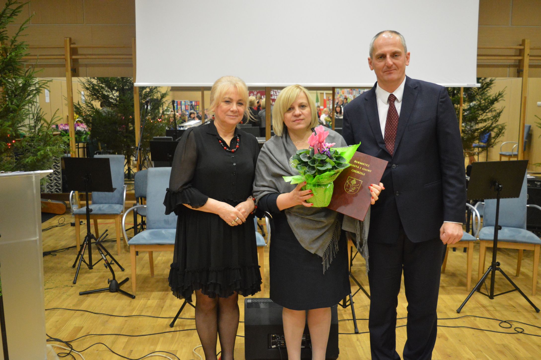 Podziękowanie za rozwój życia kulturalnego w naszej gminie otrzymał także kapelmistrz Wojciech Jabłoński wraz z Miejską Młodzieżową Orkiestra Dętą. Słowa uznania burmistrz skierowała także do Janusza Nidzgorskiego, Prezesa Zarządu Oddziału Gminnego ZOSP RP oraz dyrektora Ośrodka Upowszechniania Kultury w Chorzelach.