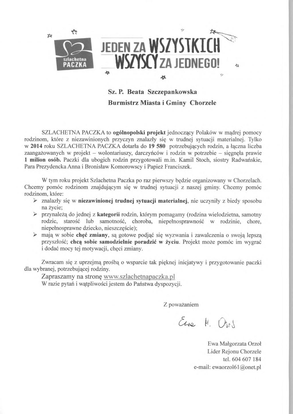 sekretariat@chorzele.pl. Wniosek powinien zawierać nazwisko, imię, nazwę i adres wnioskodawcy