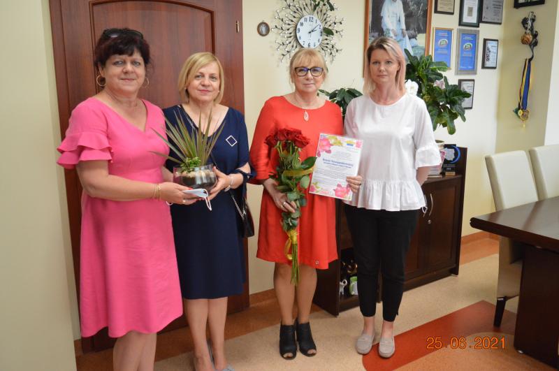 Obrazek Z okazji zakończenia roku szkolnego, Dyrektorzy szkół podstawowych i placówek oświatowych z terenu Miasta i Gminy Chorzele wraz z przedstawicielami społeczności szkolnej, złożyli serdeczne podziękowania na ręce burmistrz Beaty Szczepankowskiej za życzliwość, współpracę i wsparcie w roku szkolnym 2020/2021.