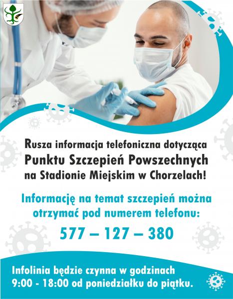 Obrazek Rusza informacja telefoniczna dotycząca Punktu Szczepień Powszechnych na Stadionie Miejskim w Chorzelach!