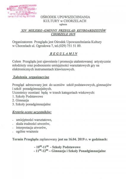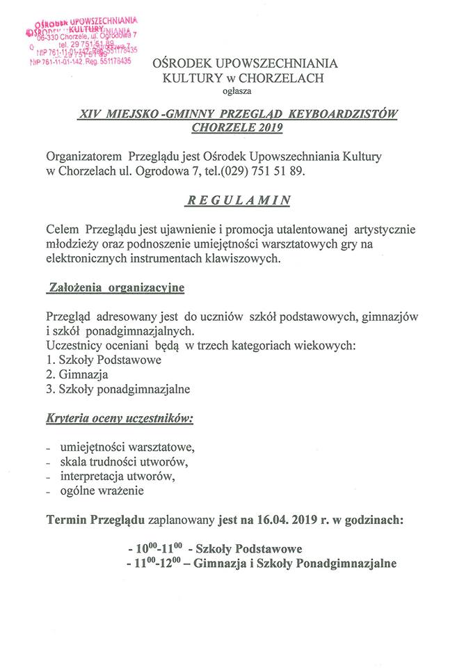 XIV Miejsko-Gminny Przegląd Keyboardzistów Chorzele 2019