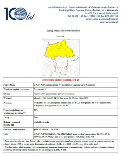 Ostrzeżenie meteorologiczne nr 28