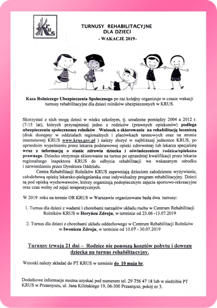 Turnusy rehabilitacyjne dla dzieci - wakacje 2019