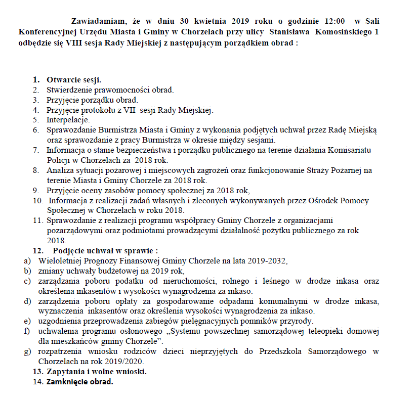 VIII sesja Rady Miejskiej w Chorzelach