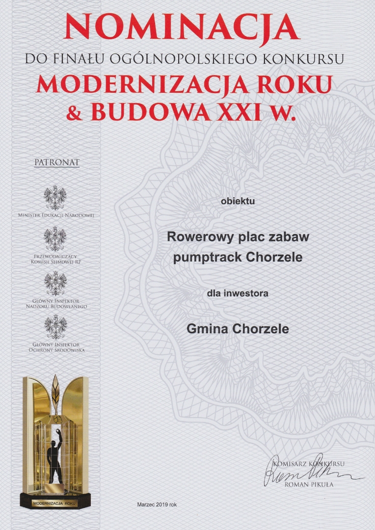 20 INWESTYCJI MIASTA I GMINY CHORZELE NOMINOWANYCH DO FINAŁU OGÓLNOPOLSKIEGO KONKURSU MODERNIZACJA ROKU 2018!