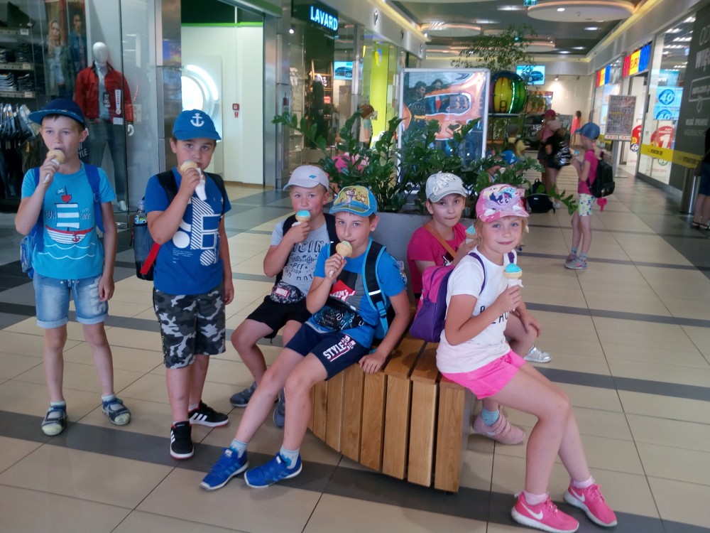 Kolejnym punktem wycieczki był spacer w Galerii Bursztynowej zakończony jedzeniem przepysznych zimnych lodów i zabawy w sali zabaw „Figlarium” połączone z warsztatami kulinarnymi. Uczniowie samodzielnie wykonywali zdrowe kanapki, które oczywiście później mogli zjeść.