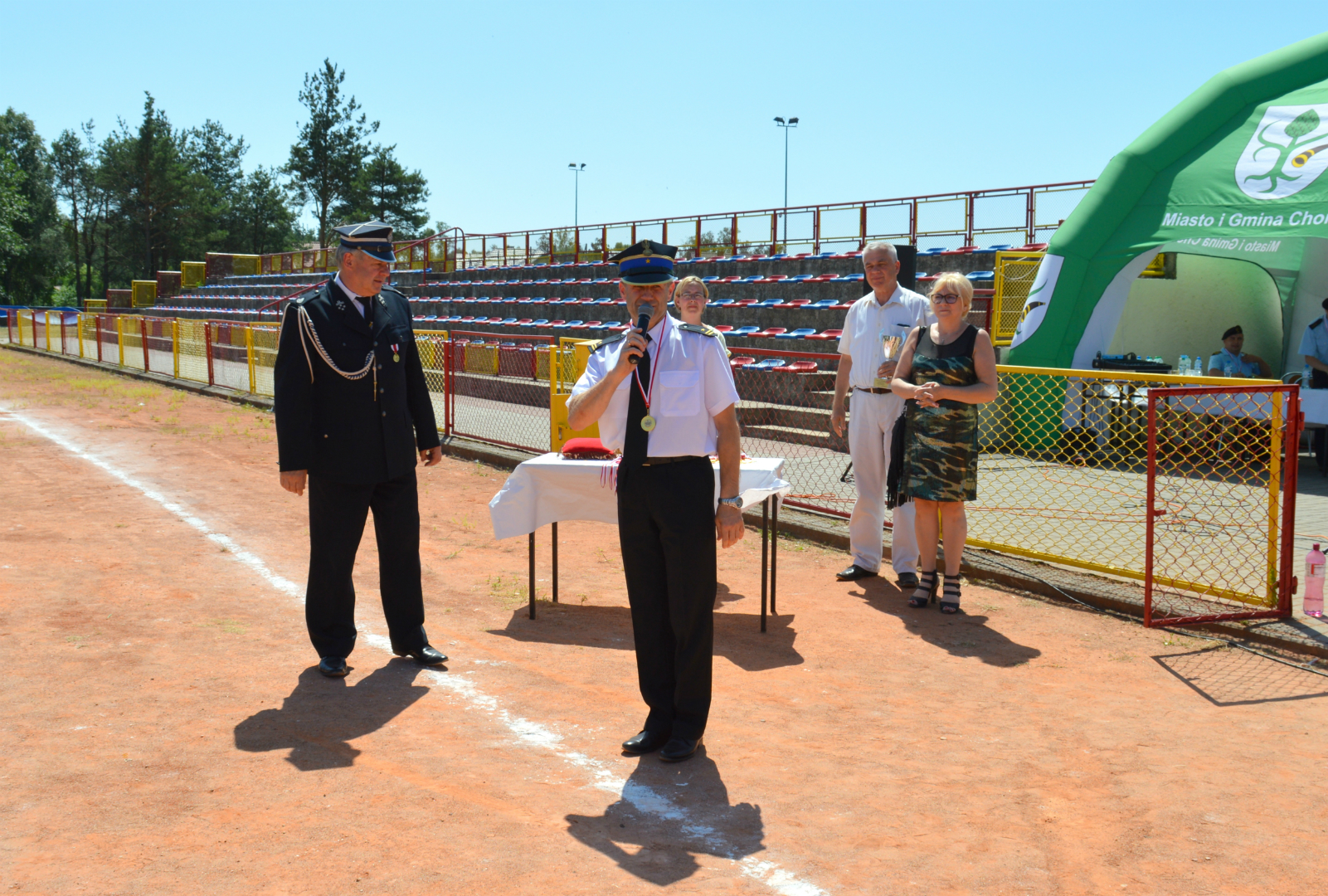 Każda z drużyn otrzymała puchar oraz nagrody pieniężne, które zostaną przeznaczone na doposażenie sprzętu bojowego poszczególnych jednostek. Wszystkich uczestników nagrodzono także pamiątkowymi medalami. Na zakończenie Zarząd Gminnego ZOSP RP wręczył puchar i podziękował byłemu staroście Zenonowi Szczepankowskiemu za wieloletnią współpracę oraz ogromne wsparcie, na które strażacy z naszej gminy mogli liczyć przez ostatnie 20 lat. Słowa uznania za sukcesywną pomoc skierowane zostały również do Burmistrz Miasta i Gminy Chorzele Beaty Szczepankowskiej i władz Gminy.