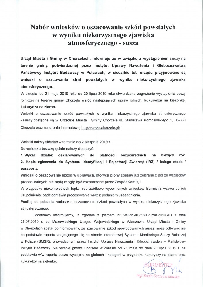 Nabór wniosków o oszacowanie szkód powstałych w wyniku niekorzystnego zjawiska atmosferycznego - susza
