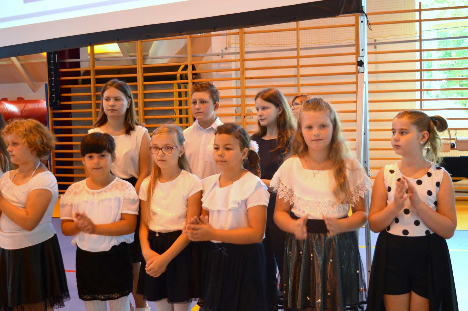 Uczniowie wspólnie z prababciami, pradziadkami, a także osobami, które mieszkają na terenie gminy i wywodzą się z pokolenia Dzieci Wojny, uczestniczyli w inauguracji roku szkolnego 2019/2020. Pamiętamy i wyrażamy najwyższy szacunek dla pokolenia II Wojny Światowej.