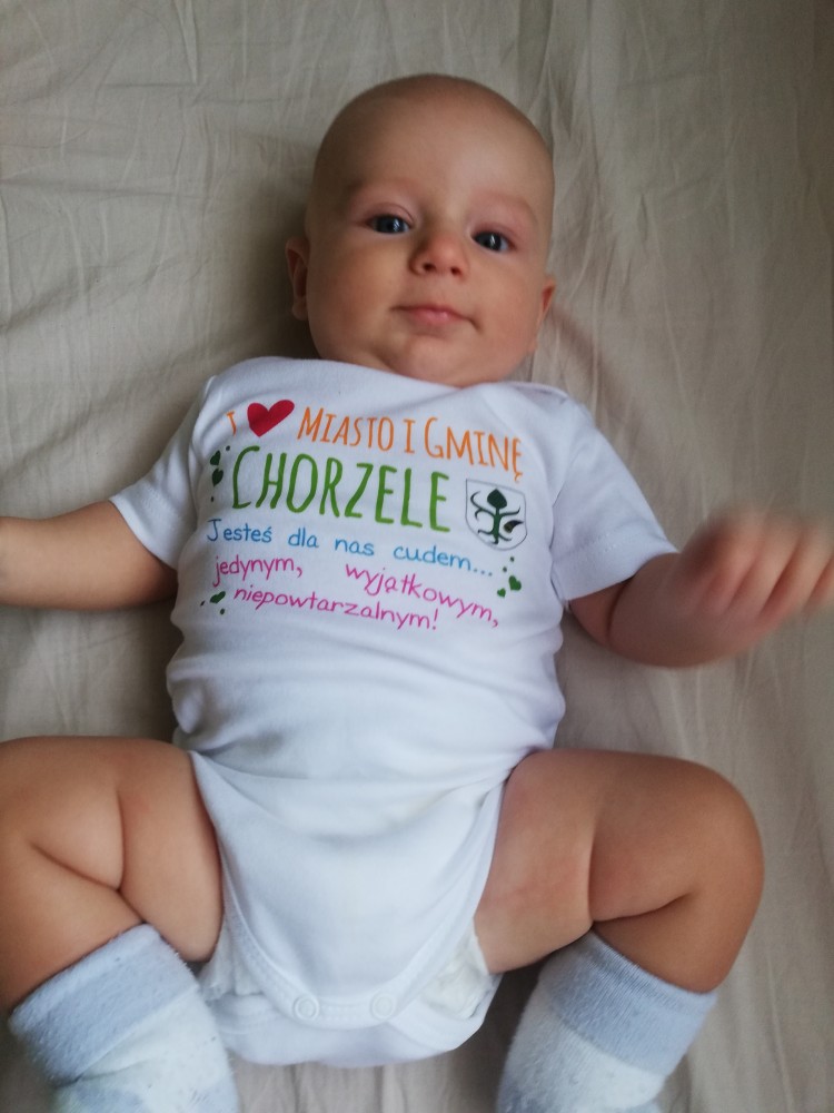 Prezentujemy zdjęcie naszego małego, pięknego Mieszkańca w chorzelskich bodziakach wręczanych przez burmistrz Beatę Szczepankowską! Czekamy na kolejne.