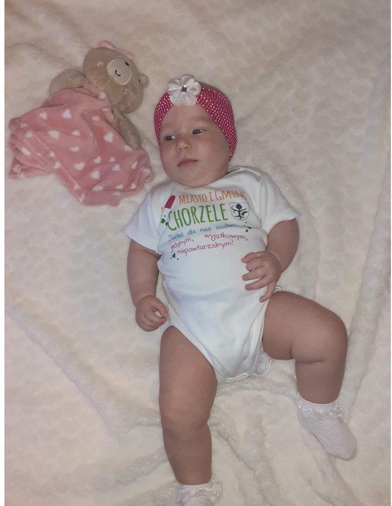 Prezentujemy zdjęcie naszej małej, pięknej Mieszkanki w chorzelskich bodziakach wręczanych przez burmistrz Beatę Szczepankowską! Czekamy na kolejne.