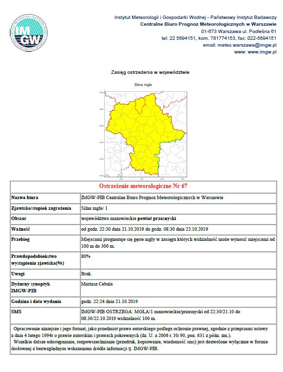 Ostrzeżenie meteorologiczne nr 67