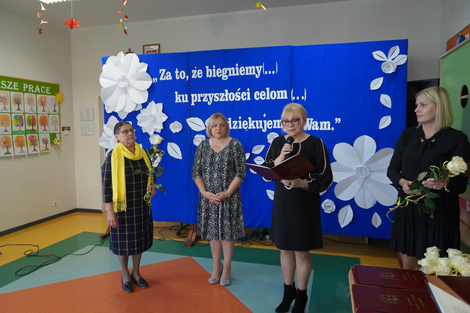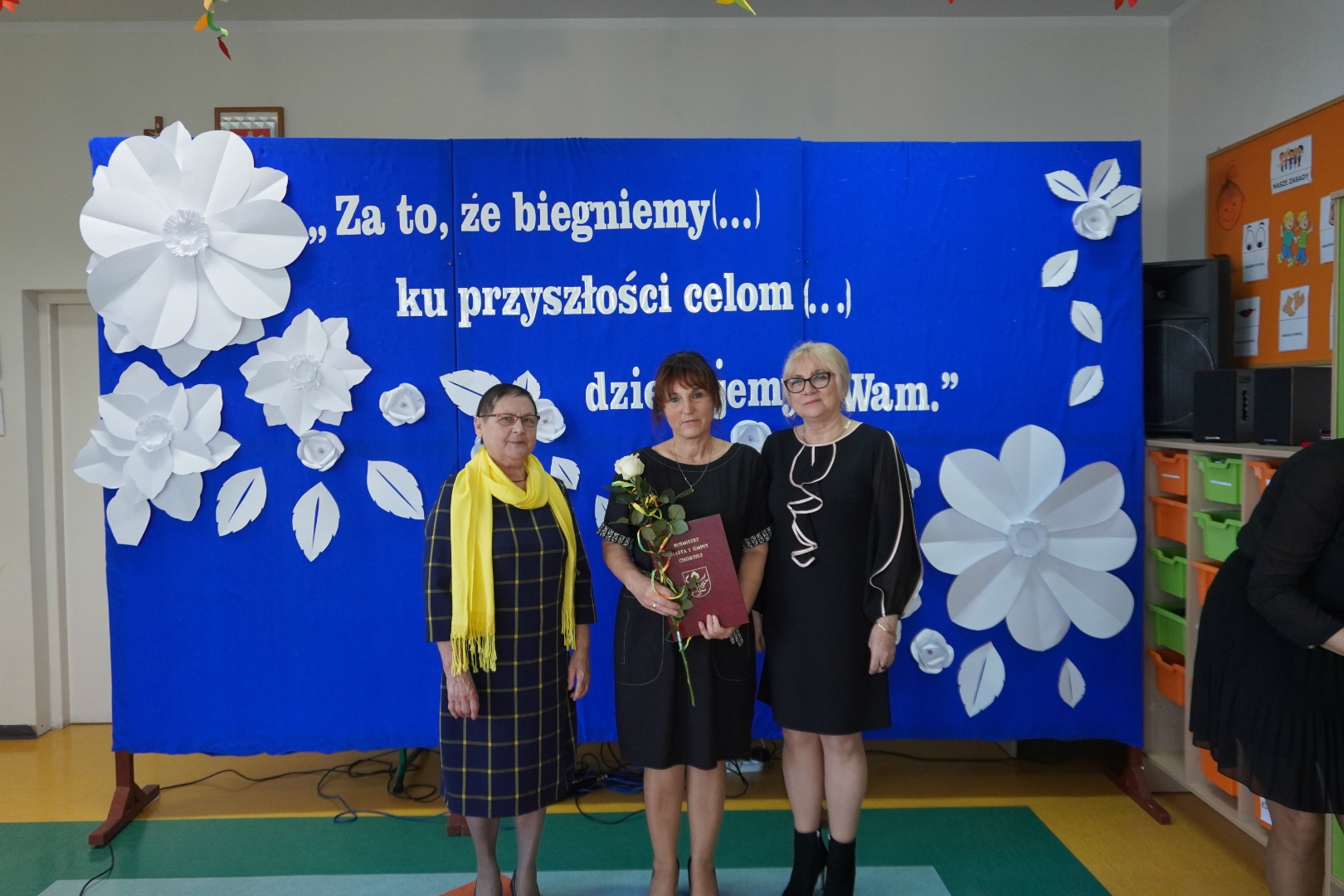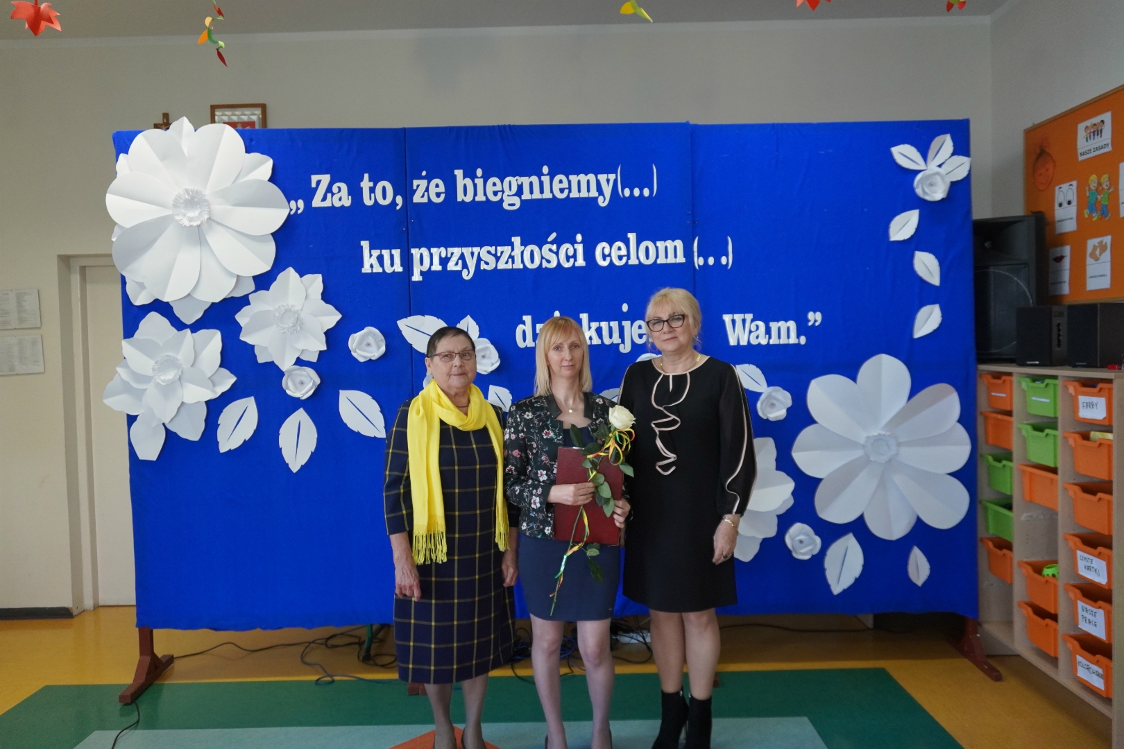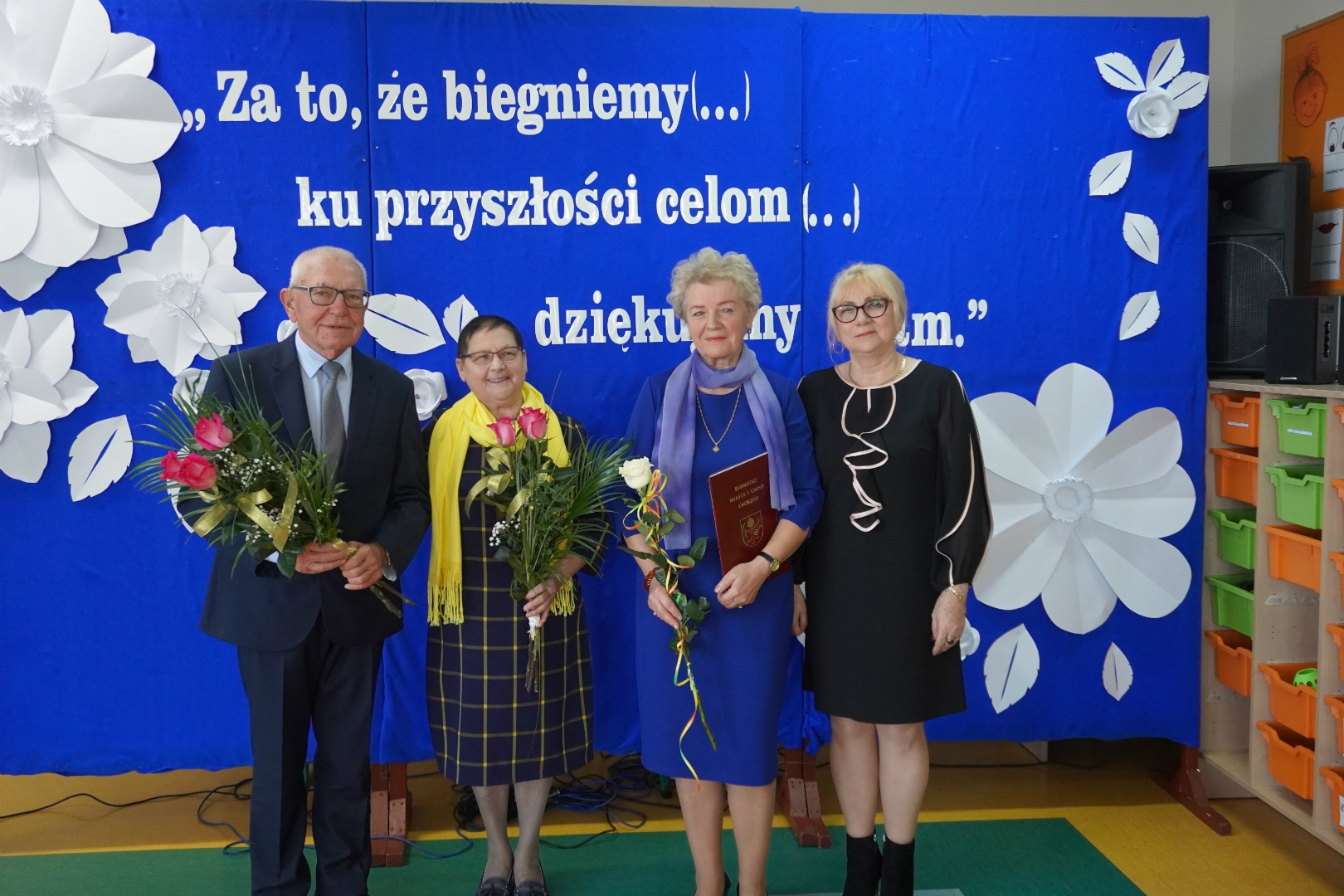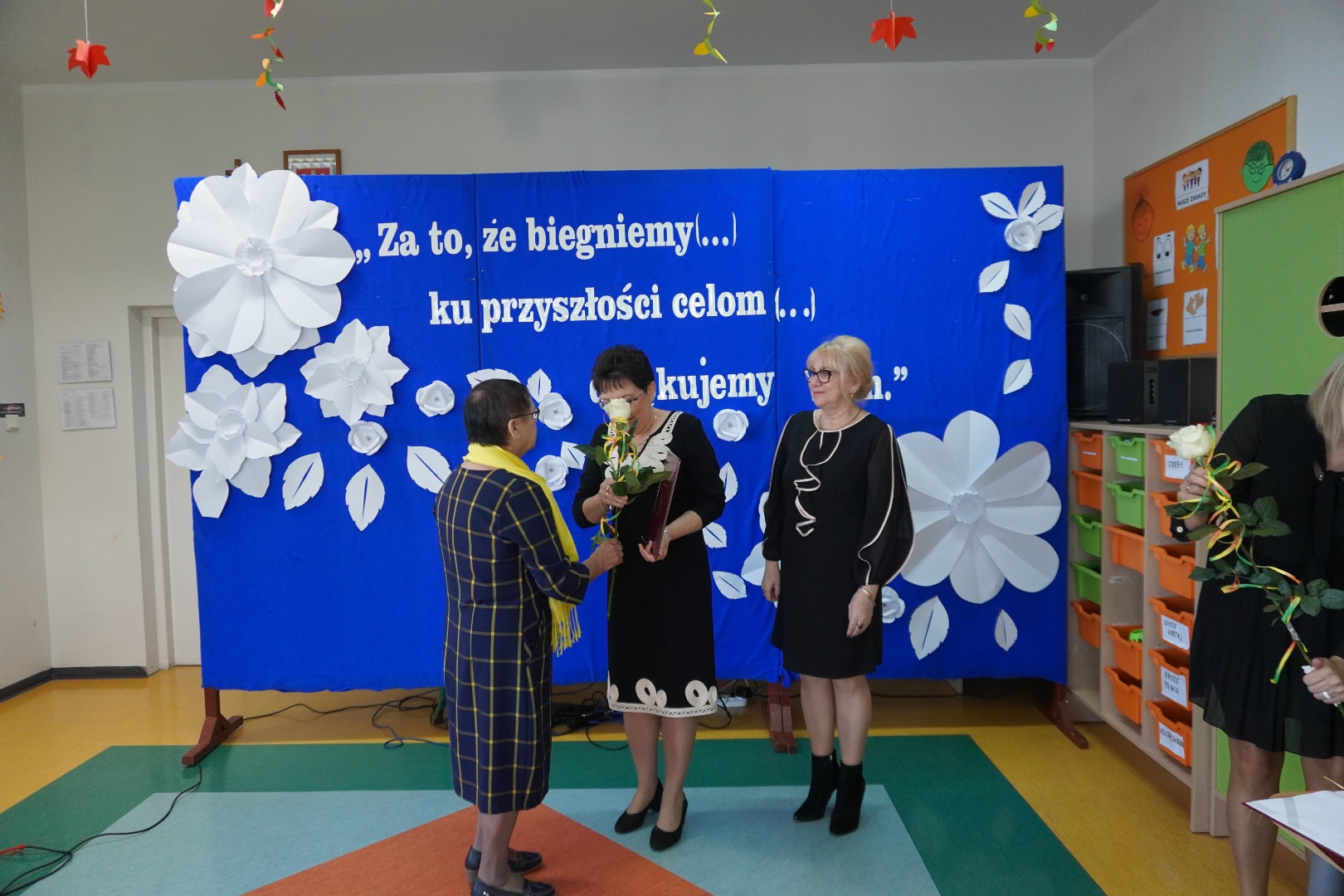 Burmistrz doceniła oraz wręczyła list gratulacyjny Kazimierze Kowalskiej -emerytowanej nauczycielce. Podziekowania otrzymała również Wanda Jastrzębska - radna Rady Miejskiej w Chorzelach oraz Ryszard Jastrzębski - Przewodniczący Ogniska Emerytów Związku Nauczycielstwa Polskiego w Chorzelach. Uroczystość poprowadziła Izabela Jurczewska, Dyrektor Wydziału Oświaty Miasta i Gminy Chorzele.