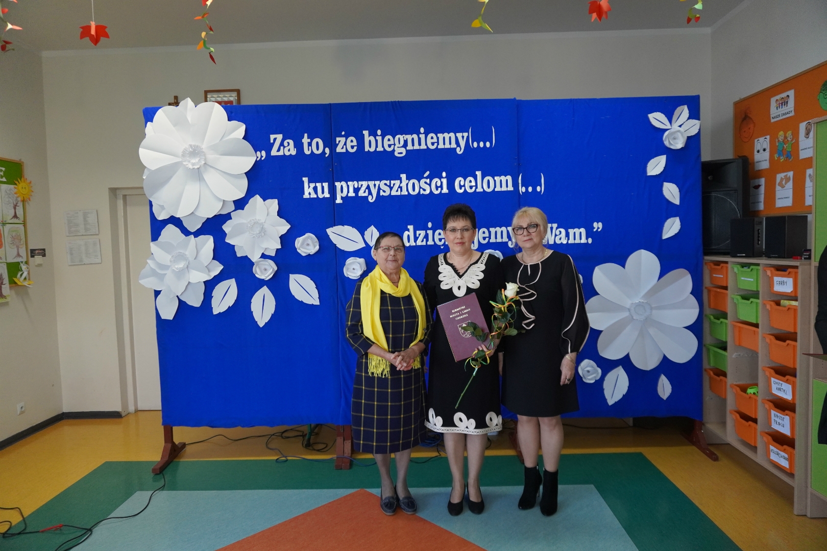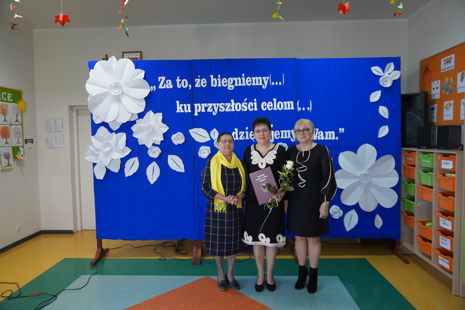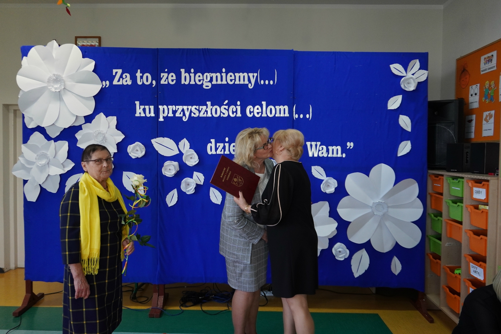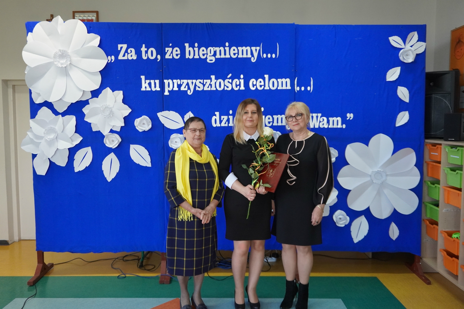 Burmistrz doceniła oraz wręczyła list gratulacyjny Kazimierze Kowalskiej -emerytowanej nauczycielce. Podziekowania otrzymała również Wanda Jastrzębska - radna Rady Miejskiej w Chorzelach oraz Ryszard Jastrzębski - Przewodniczący Ogniska Emerytów Związku Nauczycielstwa Polskiego w Chorzelach. Uroczystość poprowadziła Izabela Jurczewska, Dyrektor Wydziału Oświaty Miasta i Gminy Chorzele.