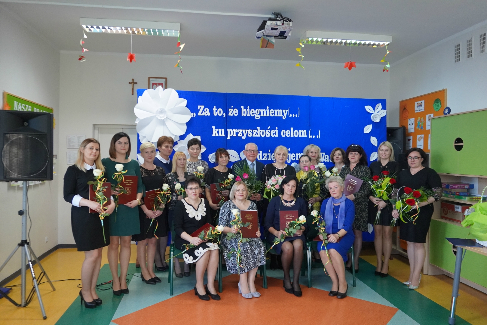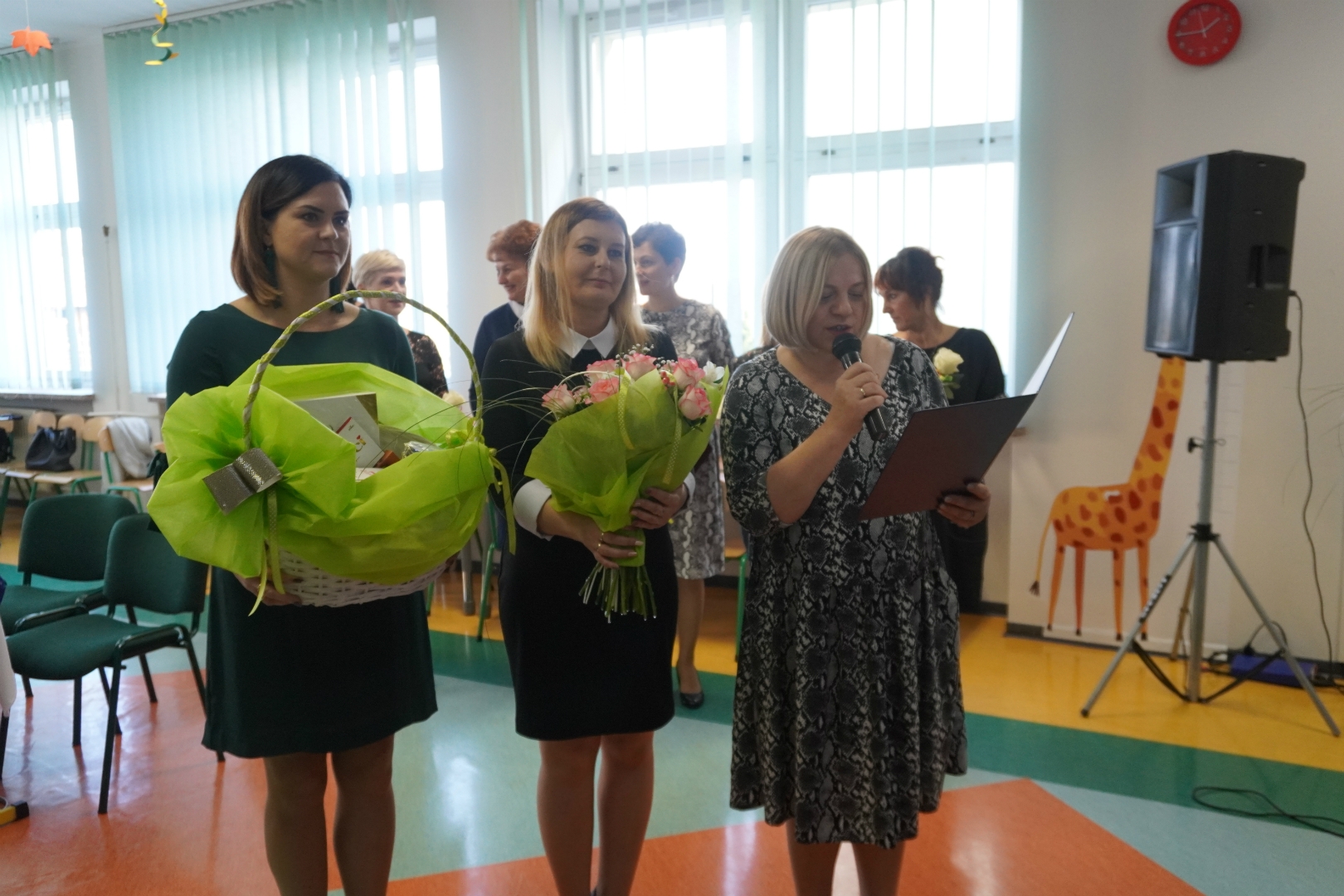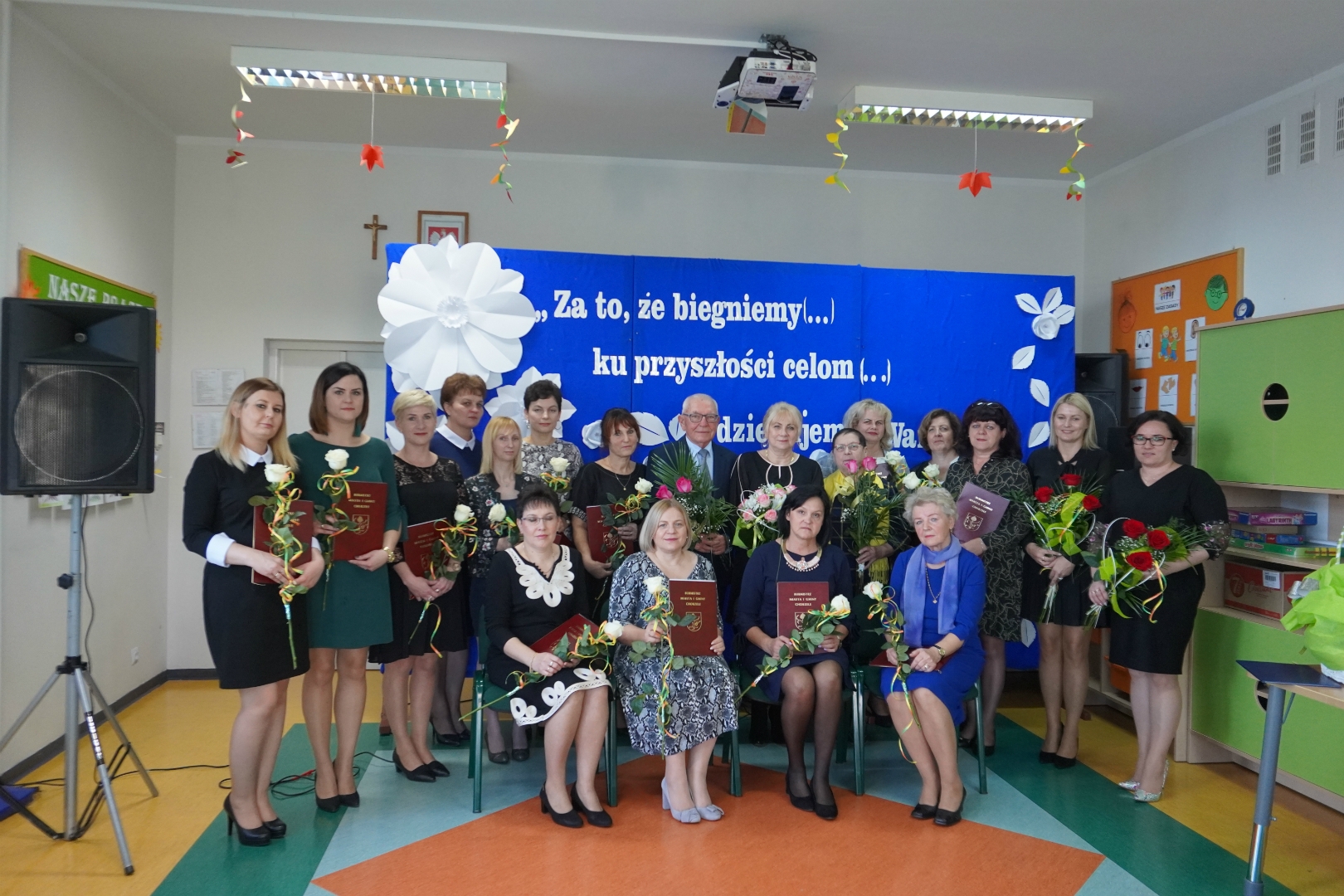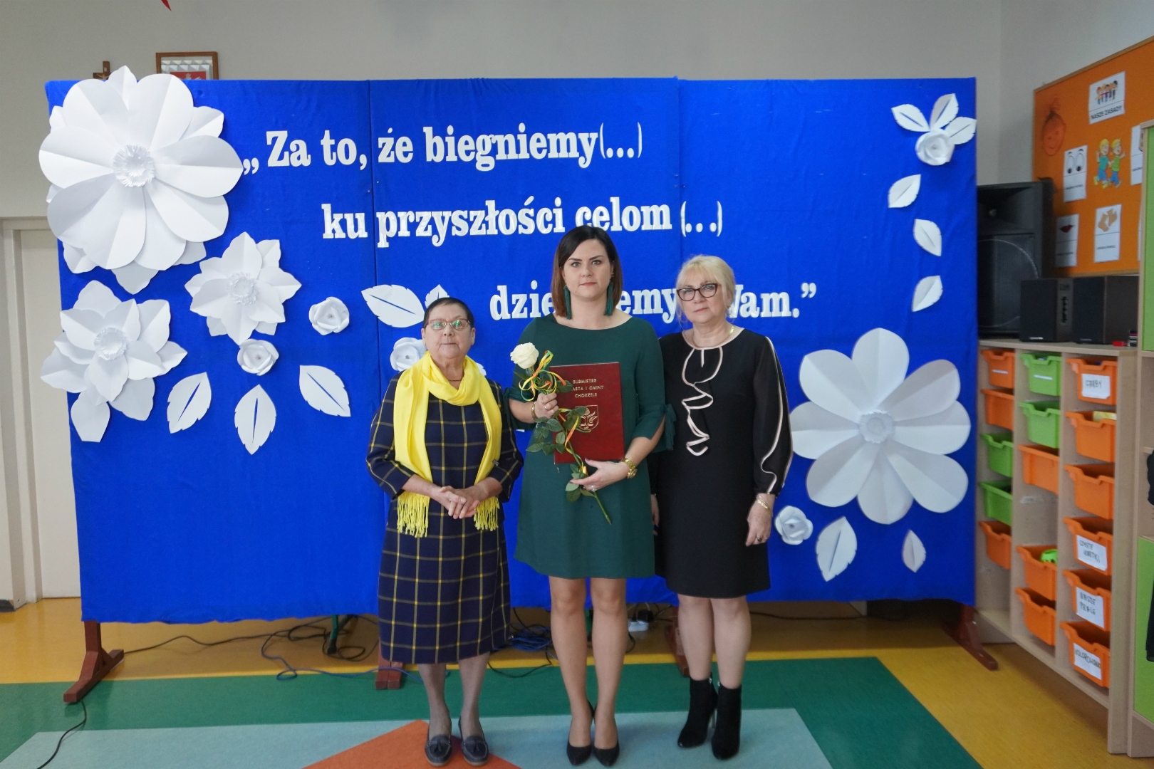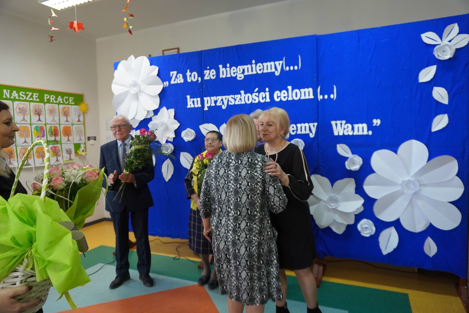 Burmistrz doceniła oraz wręczyła list gratulacyjny Kazimierze Kowalskiej -emerytowanej nauczycielce. Podziekowania otrzymała również Wanda Jastrzębska - radna Rady Miejskiej w Chorzelach oraz Ryszard Jastrzębski - Przewodniczący Ogniska Emerytów Związku Nauczycielstwa Polskiego w Chorzelach. Uroczystość poprowadziła Izabela Jurczewska, Dyrektor Wydziału Oświaty Miasta i Gminy Chorzele.
