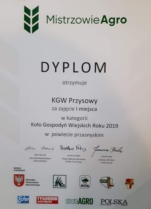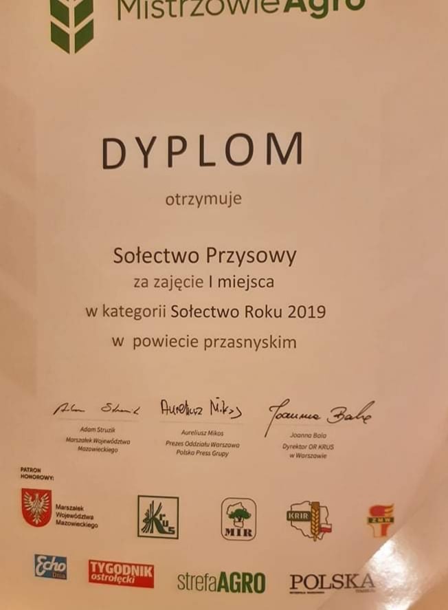 Sołectwo Przysowy i Koło Gospodyń Wiejskich zajęły I miejsca w Powiecie Przasnyskim w plebiscycie ,,Mistrzowie Agro". Wielkie gratulacje dla pani sołtys Elżbiety Siedleckiej, wszystkich mieszkańców sołectwa oraz całego Koła Gospodyń Wiejskich!Podziękowania również dla wszystkich, którzy oddali głosy!