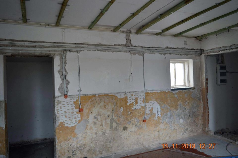 Zakres inwestycji obejmuje: roboty sanitarne, elektryczne, wymianę pokrycia dachowego, remont schodów, wymianę stolarki okiennej i drzwiowej, wewnętrzne roboty remontowe.