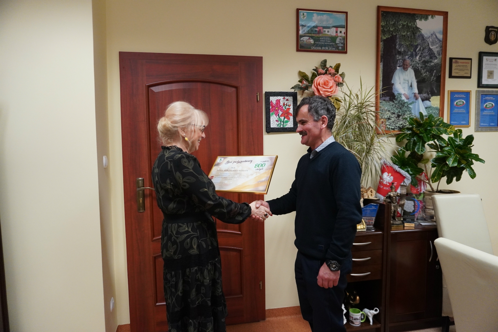 W grudniu ub. r. ogłosiliśmy konkurs na „Najpiękniejszą świąteczną dekorację posesji na terenie Miasta i Gminy Chorzele 2019/2020”. Była to dopiero pierwsza edycja konkursu i mimo wielu pięknie przystrojonych domów na terenie naszej gminy, otrzymaliśmy jedno zgłoszenie, w związku z czym przyznaliśmy nagrodę za udział w konkursie, w postaci bonu o wartości 800 zł. Powędrowała ona do Pana Mirosława Sieruty, który wraz z synem przygotował wyjątkową, świąteczną dekorację swojej posesji.