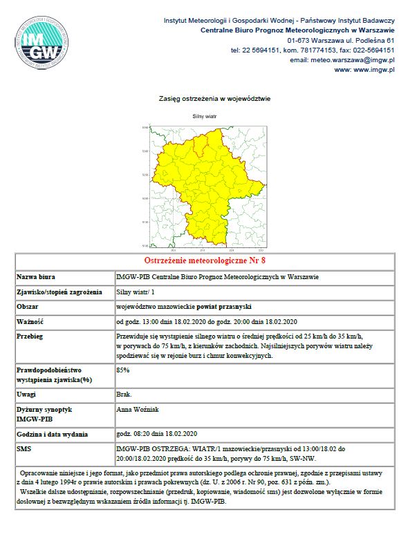 Ostrzeżenie meteorologiczne Nr 8