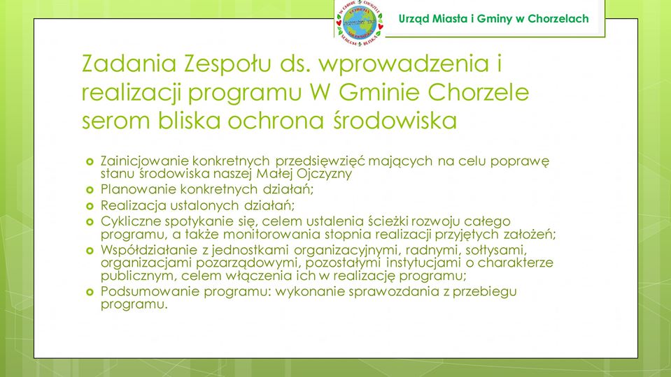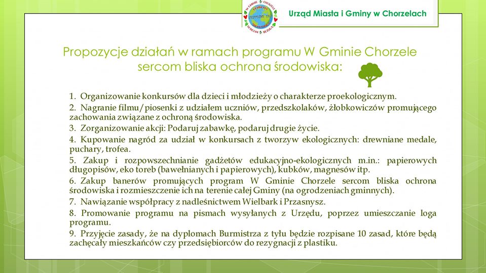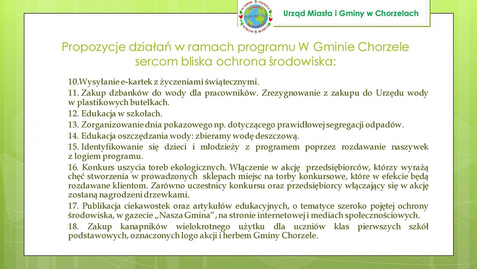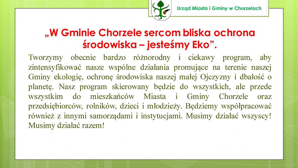 Drodzy mieszkańcy, prezentujemy nowy ekologiczny program "W Gminie Chorzele sercom bliska ochrona środowiska - jesteśmy Eko"