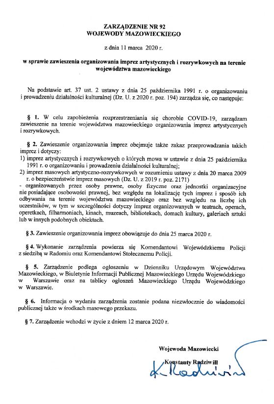 Zarządzenie nr 92 Wojewody Mazowieckiego