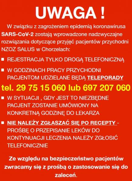 Komunikat Przychodni NZOZ SALUS w Chorzelach