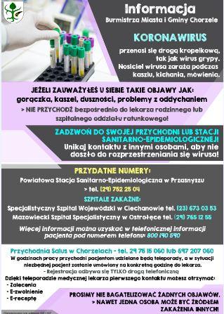 Informacja Burmistrza Miasta i Gminy Chorzele na temat koronawirusa