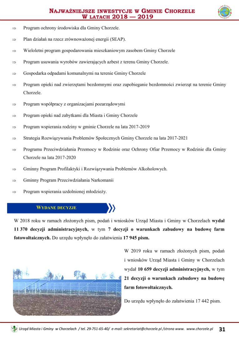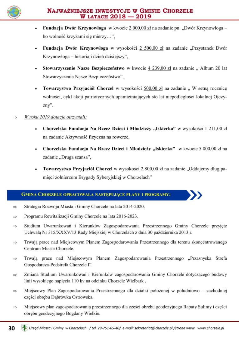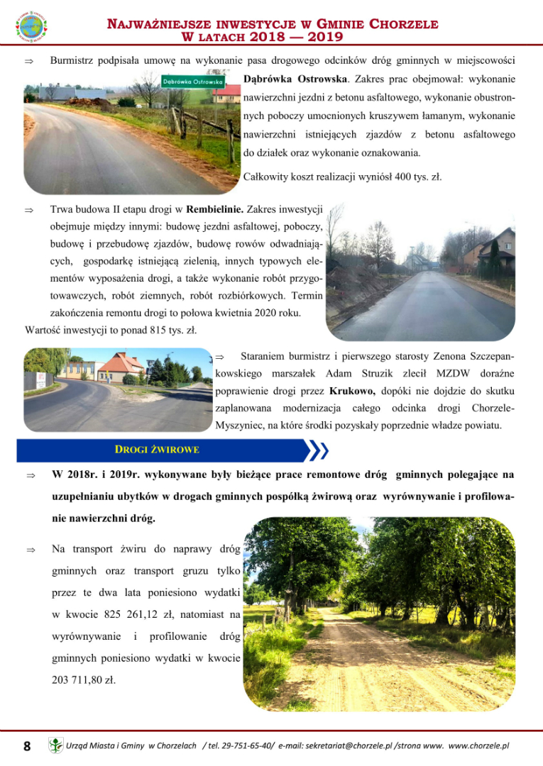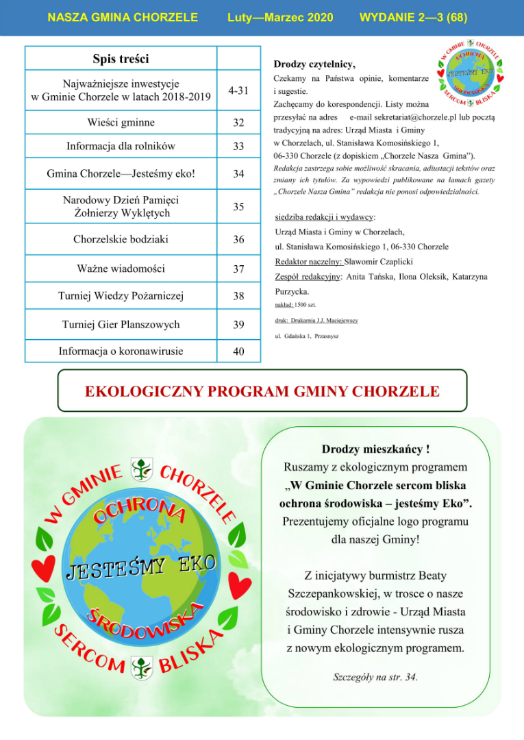 Zapraszamy do lektury przygotowywanego dla Was od dłuższego czasu, wyjątkowego, podwójnego numeru gazety, dotyczącego największych inwestycji Gminy Chorzele w latach 2018-2019. Zobaczcie co robimy i co planujemy. Realizujemy największe inwestycje dla mieszkańców w regionie. Dziś, ze względu na obecną sytuację, numer udostępniamy najpierw na naszym FB i stronie Urzędu. Wersja papierowa będzie dystrybuowana w późniejszym terminie. W tym trudnym dla nas wszystkich czasie, musimy wszyscy w maksymalnie możliwy sposób stosować się do wszelkich zasad i zaleceń. Niezmiennie służąc mieszkańcom, przekazujemy ten numer z życzeniami przede wszystkim zdrowia, licząc, że zawarte w nim treści umilą Państwu ten trudny czas i dostarczą informacji z Gminy.