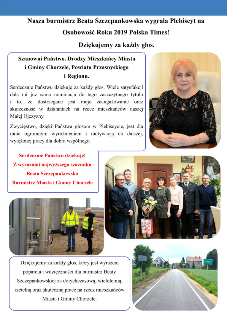Konsultacje PGNiG dla mieszkanców Miasta i Gminy Chorzele ||| INFORMACJA O KORONAWIRUSIE ||| Zwrot podatku akcyzowego ||| Wywiad z Burmistrz Miasta i Gminy Chorzele Beatą Szczepankowską. |||