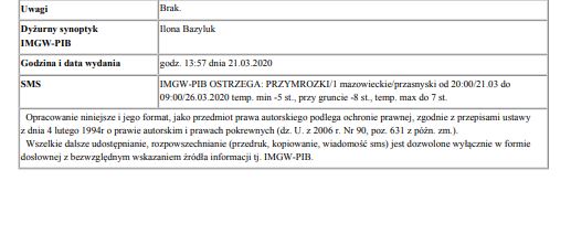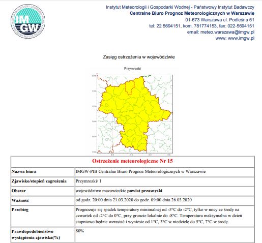 Ostrzeżenie meteorologiczne nr 15 IMGW-PIB Centralne Biuro Prognoz Meteorologicznych w Warszawie