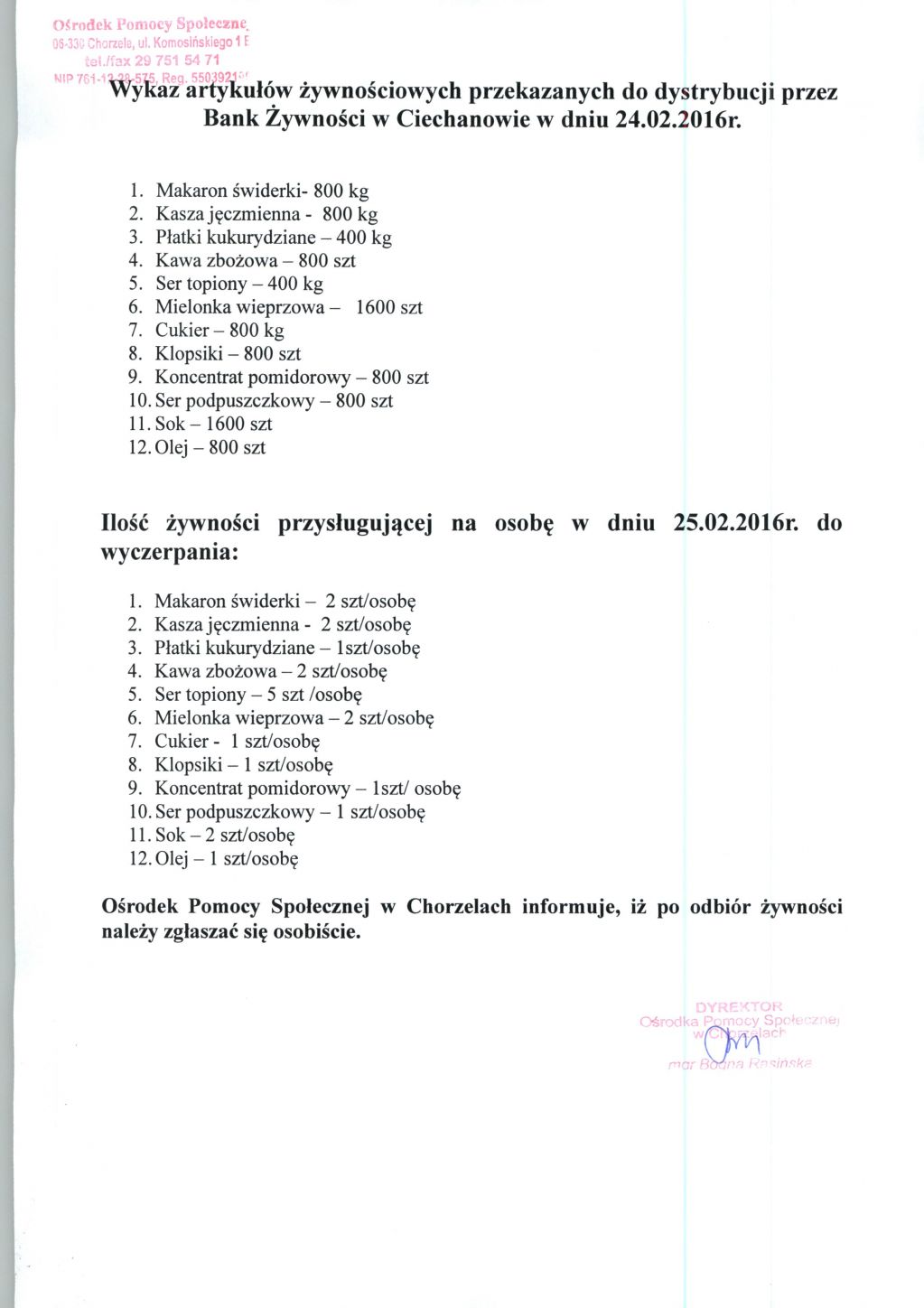Informacja Ośrodka Pomocy Społecznej o wydawaniu żywności
